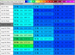 Surf forecast for next couple weeks 07/12/201207/28/2012 adminLifestyle, Travel As you can see there are waves in the future July 22 on. Keep an eye on it and book your ticket. That is good direction with perfect amount of period. Just saying………..